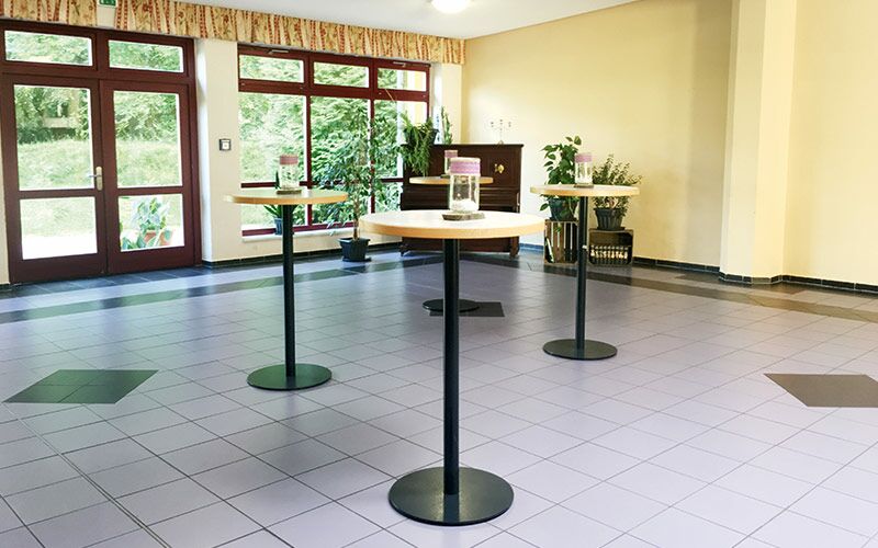 Unser Foyer mit eigenem Tresen und Zugang zum Außenbereich ist ideal für verschiedene Zusammentreffen. Wir kümmern uns gern auch um Ihr leibliches Wohl und verwöhnen Sie mit kulinarischen Köstlichkeiten. Unser Haus bietet Ihnen ein reichhaltiges Verpflegungsangebot. Der Saal und unsere Tagungsräume sind barrierefrei.